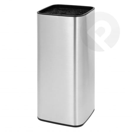 Elegancki blok na noże. Wysokiej jakości wzornictwo z satynowanej stali nierdzewnej. Solidna podstawa, zapewniająca stabilność stojaka. Równoległe szczeliny oddzielają ostrza, dzięki czemu noże nie stykają się ze sobą, nie ma potencjalnego ryzyka zarysowania krawędzi noża w bloku.