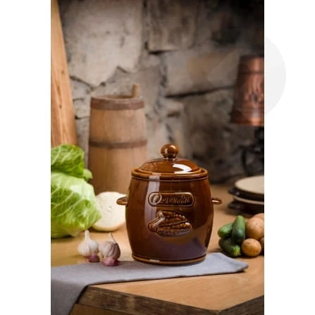 Beczka kamionkowa z pokrywą 3L do ogórków i kapusty - Praktyczne i stylowe rozwiązanie do przechowywania przetworów.