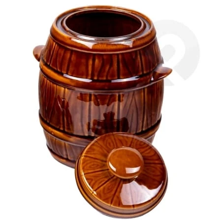 Beczka kamionkowa z pokrywą 3,5L do ogórków i kapusty - Praktyczne i stylowe rozwiązanie do przechowywania przetworów.