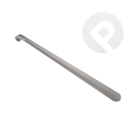 Duża metalowa łyżka do butów ułatwiająca zakładanie obuwia bez konieczności schylania.