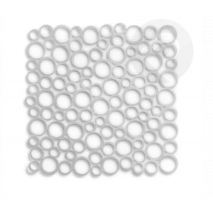 Kwadratowa mata silikonowa chroni dno zlewozmywaka przed zarysowaniem, a naczynia przed stłuczeniem. Bąbelkowe otwory ułatwiają spływ wody i podkreślają jej delikatność.