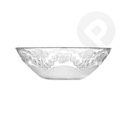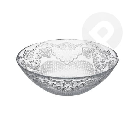 Salaterka wykonany jest z bezbarwnego szkła hartowanego, dzięki czemu jest niezwykle wytrzymały. Ozdobiony motywem koronkowym z kwiatowymi elementami. Szkło jest materiałem nieporowatym, dlatego nie zatrzymuje żadnych mikroorganizmów, jest 100% higieniczne. Idealnie nadaje się do serwowania mięs, dań z sosami, warzyw, owoców, sałatek, frytek, przekąsek czy ryb w galarecie.