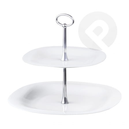 2-poziomowa patera wykonany jest ze szkła, dzięki czemu jest niezwykle wytrzymała. Szkło jest materiałem nieporowatym, dlatego nie zatrzymuje żadnych mikroorganizmów, jest 100% higieniczne. Ma nowoczesny i estetyczny wygląd. Doskonale pozwoli w stylowy sposób zaserwować ciasta, torty, owoce i inne słodkie wypieki prosto na stół. Patera posiada uchwyt, który ułatwia jej przenoszenie.