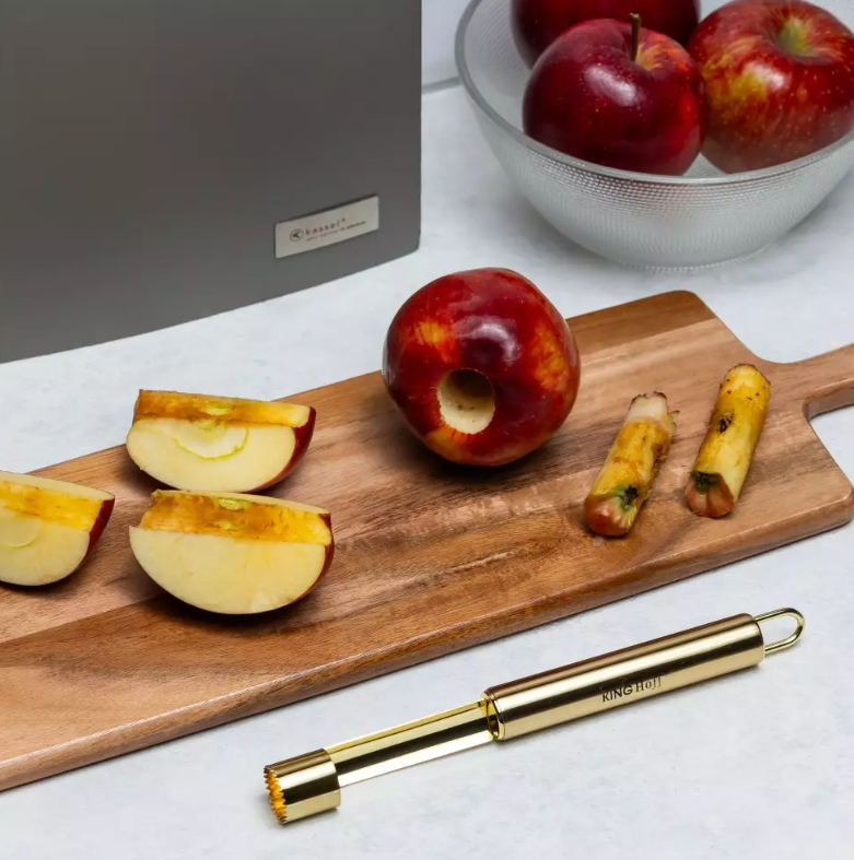 Funkcjonalna i elegancka drylownica marki KINGHoff to niezbędne narzędzie w każdej kuchni. Dzięki niej szybko i łatwo usuniesz ogryzki z jabłek, gruszek oraz innych owoców, pozostawiając ich miąższ w idealnym stanie.