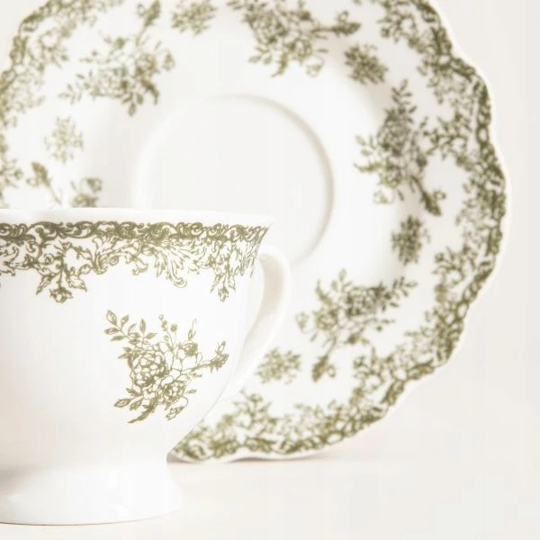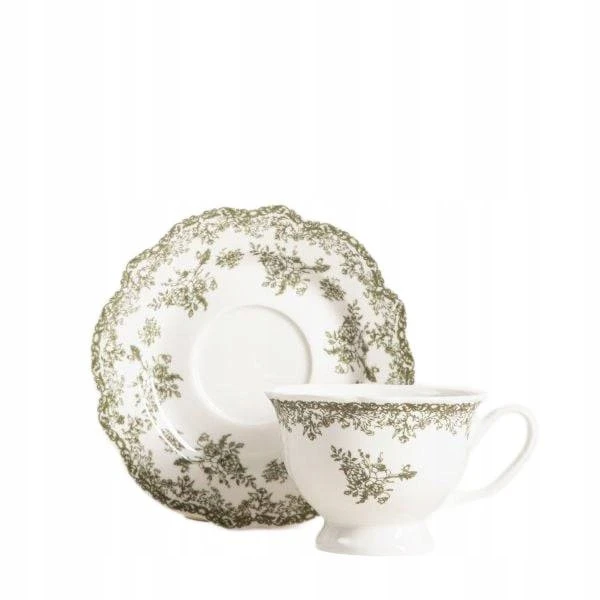 ▶️ Filiżanka Lourry ze spodkiem biało-zielony 0,2 l HOMLA