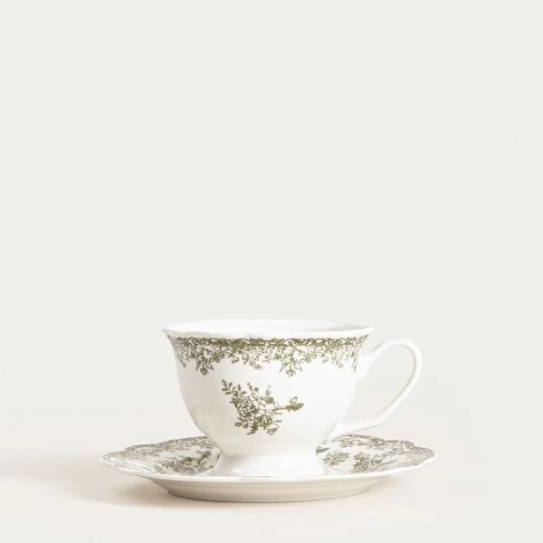 Filiżanka Lourry ze spodkiem biało-zielona 0,2 L HOMLA
