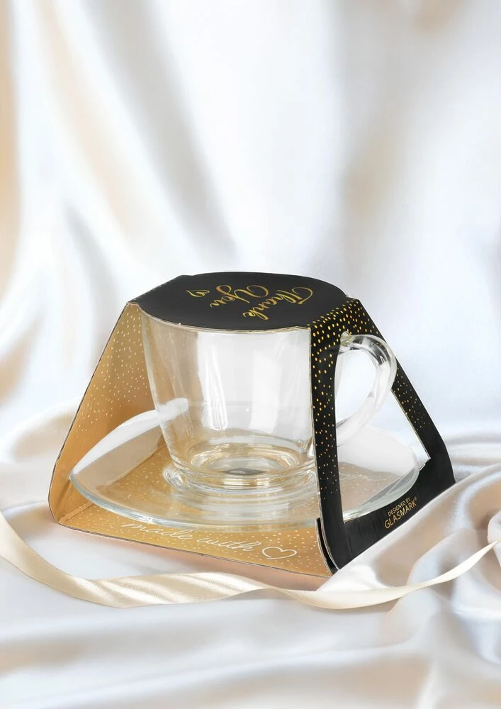 Filiżanka szklana LUNA 320 ml ze spodkiem – Glasmark