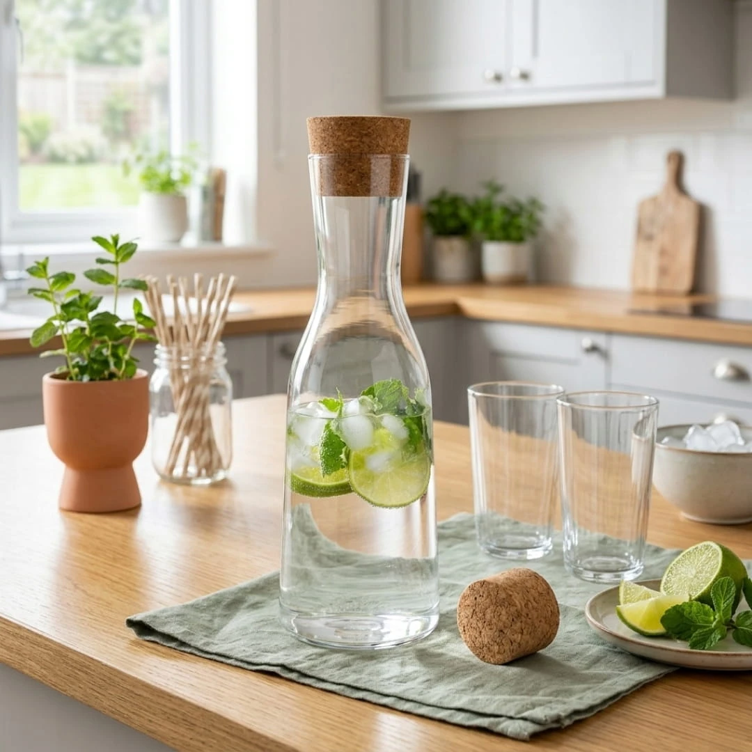 ➡️ Praktyczny korek skutecznie chroni napoje przed owadami oraz drobnymi zanieczyszczeniami, dzięki czemu karafka idealnie nadaje się do codziennego użytkowania w domu, a także podczas spotkań czy przyjęć.