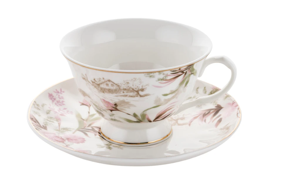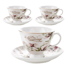 Filiżanki ze spodkiem Idillo dla 2 osób to połączenie elegancji, subtelnego wzornictwa i wysokiej jakości wykonania. Kwiatowe dekoracje, sielski motyw oraz złote akcenty czynią ten zestaw wyjątkowym dodatkiem do każdej jadalni i doskonałym prezentem na wiele okazji.