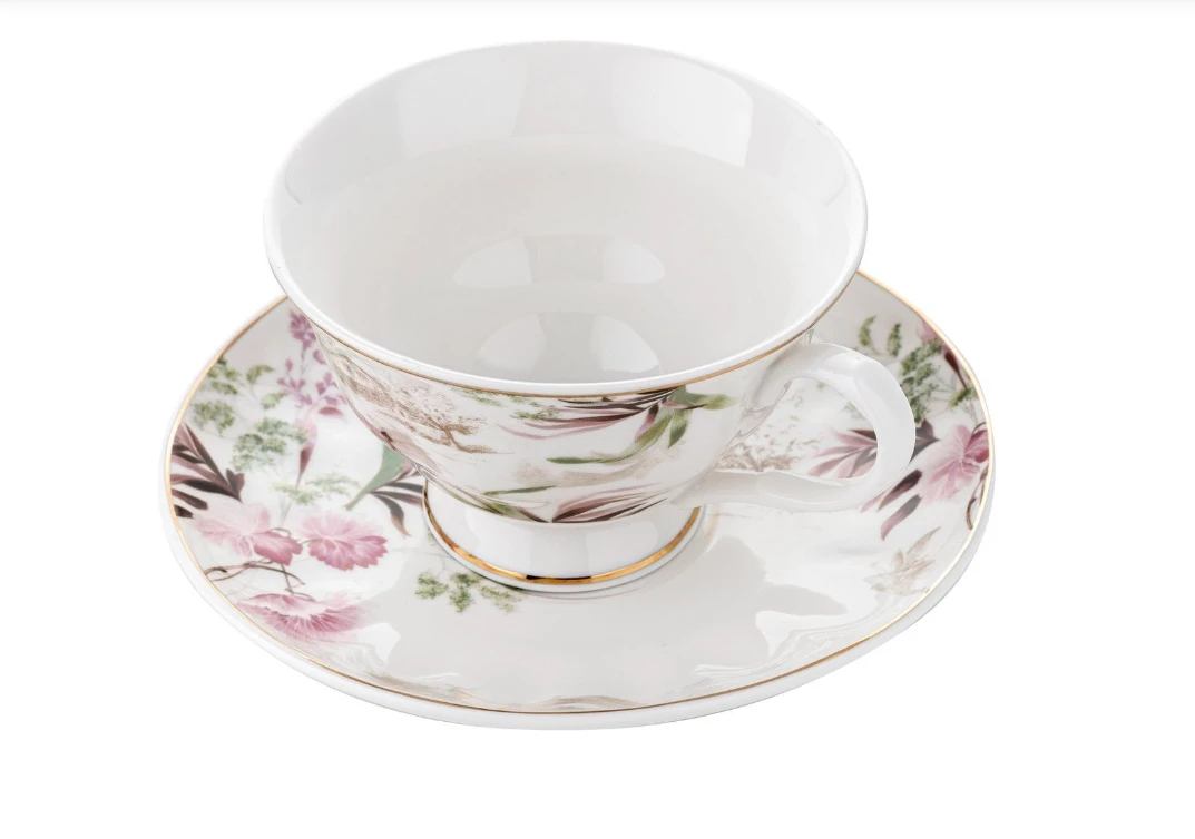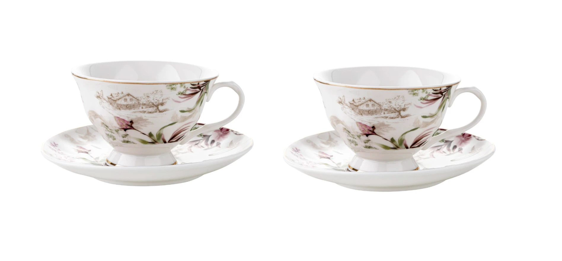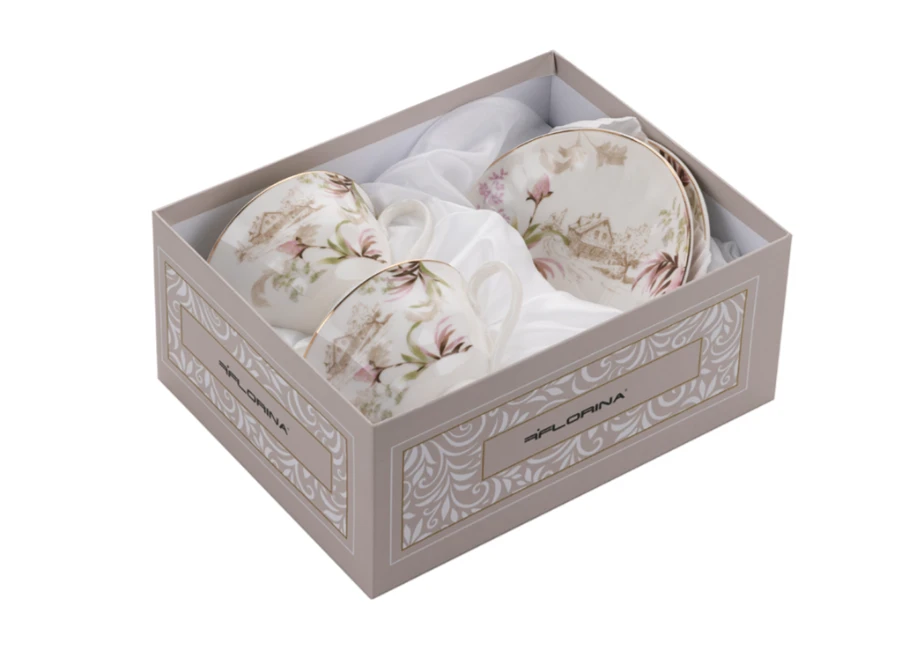 Filiżanki ze spodkiem Idillo dla 2 osób – kwiatowa elegancja