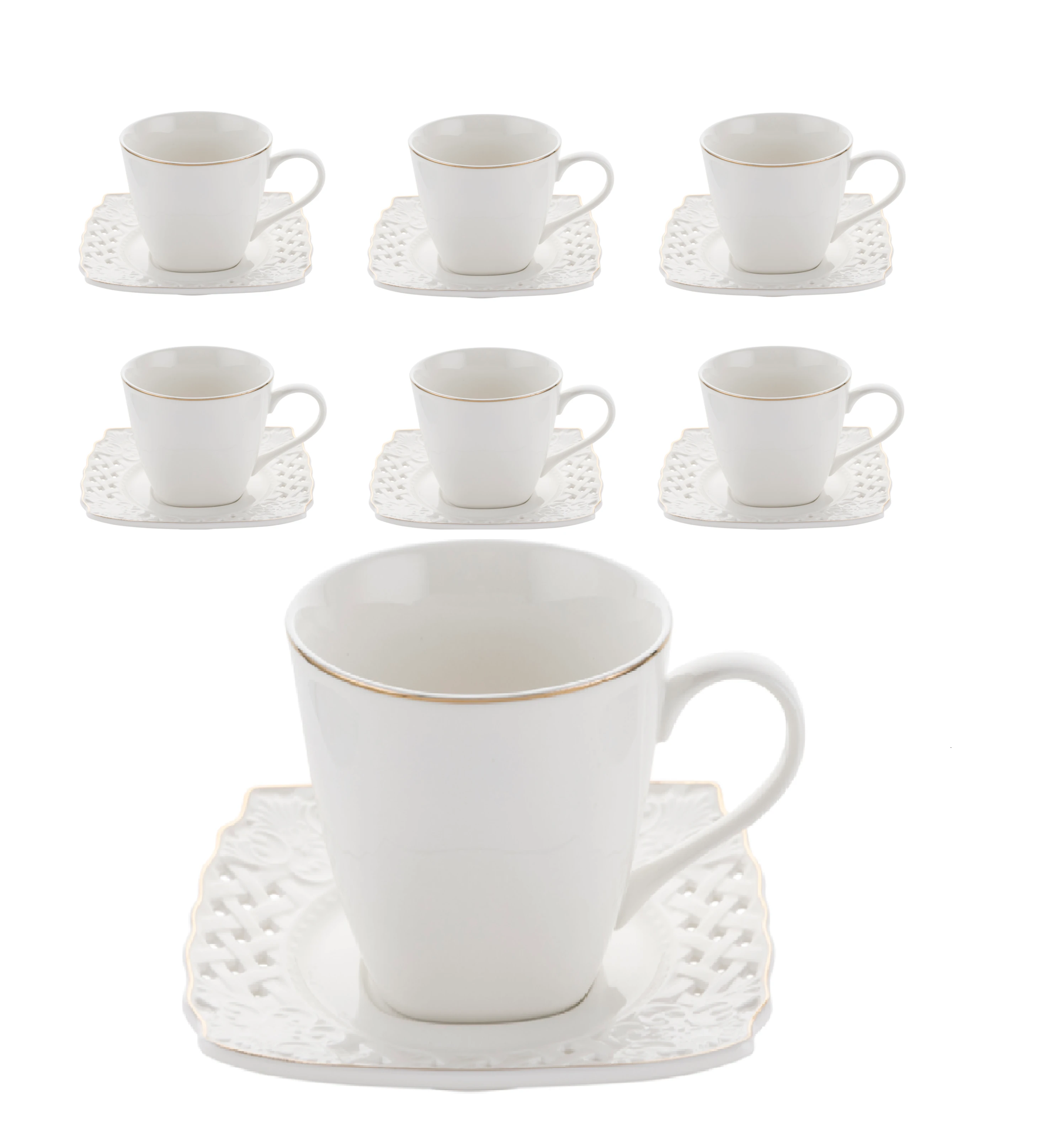 ✴️Eleganckie zdobienie Rant filiżanek oraz spodków ozdobiono subtelną, pozłacaną linią, oraz ażurowym spodkiem która nadaje zestawowi luksusowego i ponadczasowego charakteru.