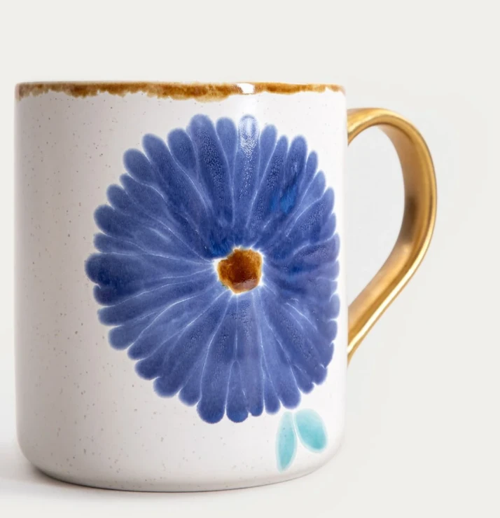 Kubek MEREN z niebieskim kwiatem i złotym uchem 0,5 l – elegancja na co dzień