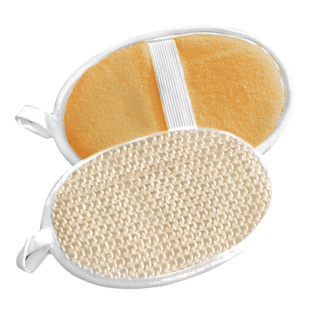 Strona z włókien agawy sizalowej działa jak naturalny peeling – skutecznie złuszcza martwy naskórek, pobudza krążenie i wygładza skórę bez konieczności używania dodatkowych kosmetyków. Z kolei miękka warstwa z mikrofibry delikatnie oczyszcza i pielęgnuje ciało, zapewniając komfort podczas kąpieli.