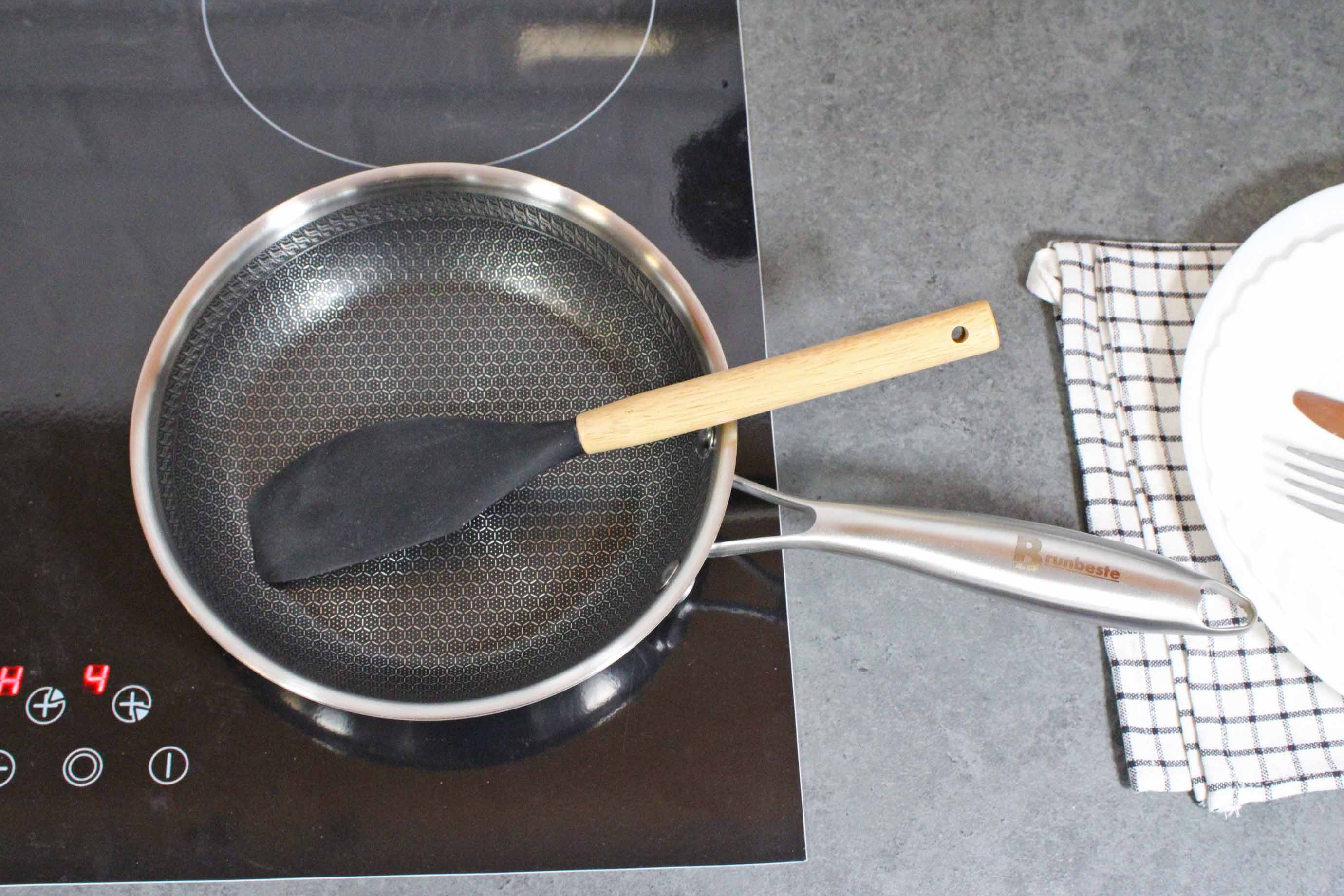 Wnętrze patelni posiada specjalną strukturę w kształcie plastera miodu, która wspomaga równomierne rozprowadzanie ciepła i ogranicza przywieranie potraw. Dzięki temu przygotowywanie dań jest wygodne, a efekty smażenia jeszcze lepsze.