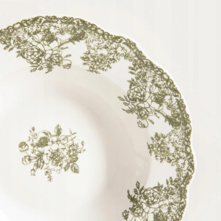 Talerz LOURRY głęboki o średnicy 22 cm to stylowe i praktyczne naczynie, które doskonale sprawdzi się podczas codziennych posiłków oraz wyjątkowych okazji. Połączenie klasycznej bieli z dekoracyjnym zielonym wzorem kwiatowym nadaje mu wyjątkowego uroku i elegancji.