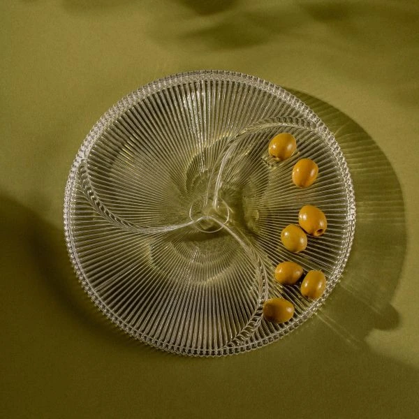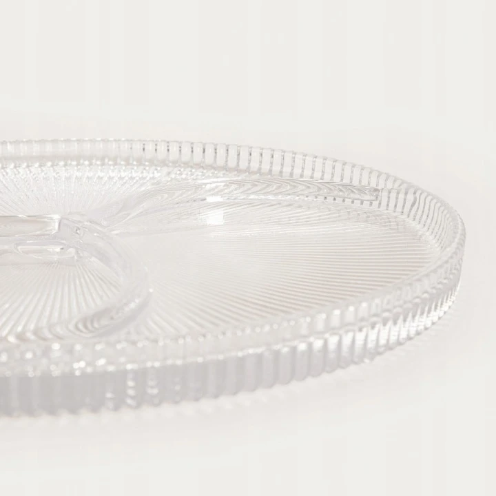 Talerz LYNN o średnicy 24 cm to stylowe naczynie, które zachwyca eleganckim wzornictwem i praktycznym zastosowaniem. Ryflowana powierzchnia oraz subtelny podział sprawiają, że talerz doskonale prezentuje serwowane przekąski, owoce i słodkości.