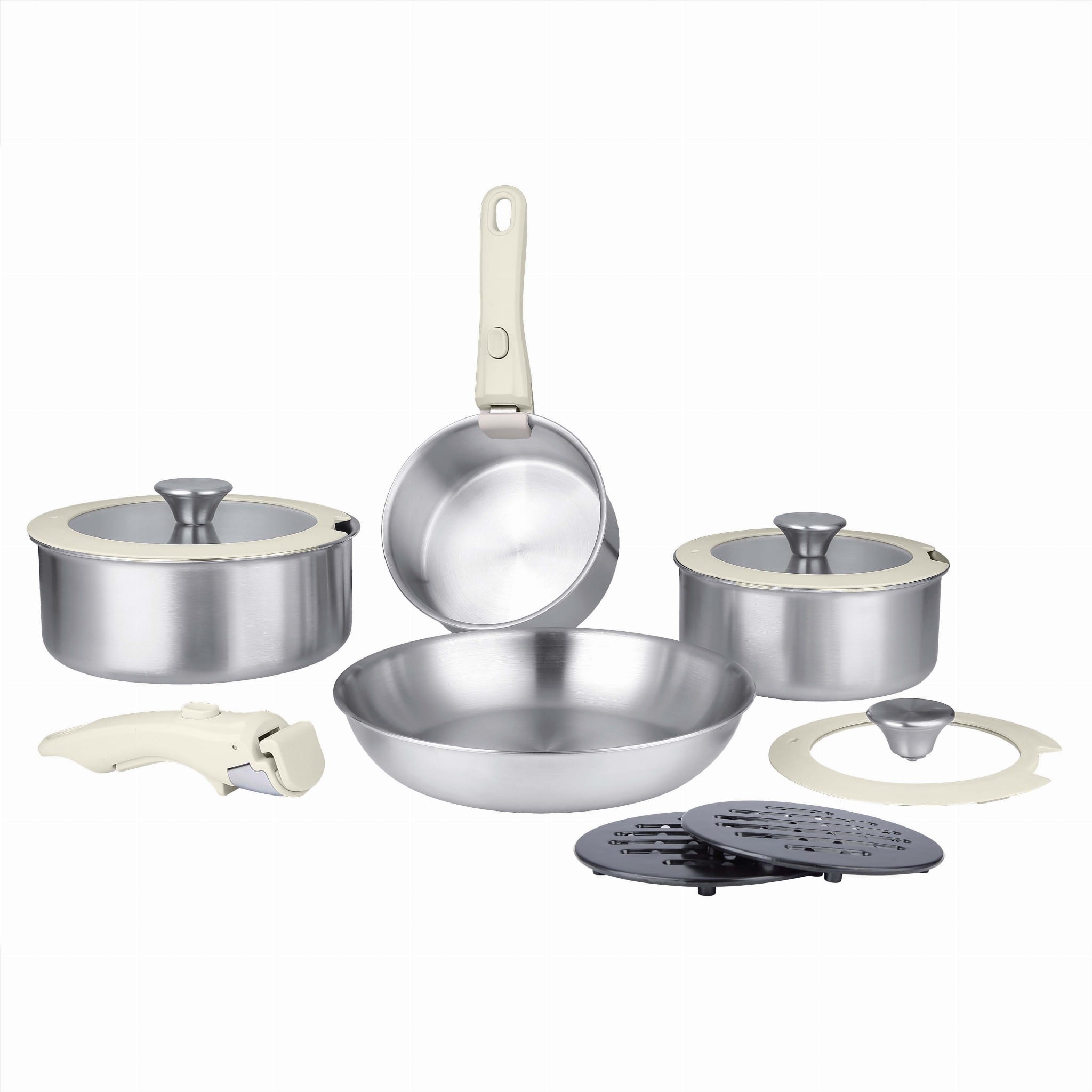 Zestaw garnków 11-elementowy ze stali nierdzewnej z odpinaną rączką