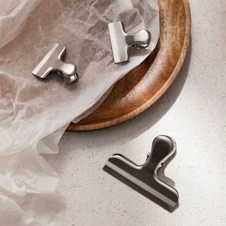 Zestaw klipsów kuchennych to funkcjonalny komplet, który ułatwi codzienne przygotowywanie, serwowanie i przechowywanie produktów spożywczych. Trzy praktyczne klipsy wykonane ze stali nierdzewnej sprawdzą się w każdej kuchni, łącząc trwałość z wygodą użytkowania.