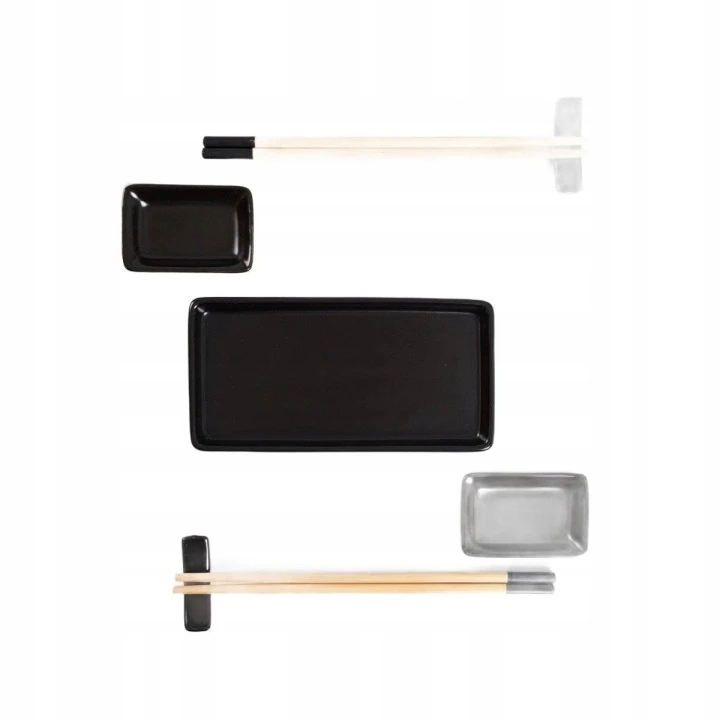 ✴️ Komplet 7 elementów Zestaw zawiera wszystkie niezbędne akcesoria do wygodnego podania sushi dla dwóch osób.