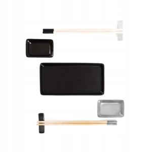 Zestaw SUSHI 7-elementowy to elegancka propozycja dla miłośników kuchni japońskiej. Stylowa czarna kolorystyka, praktyczne elementy oraz estetyczne wykonanie sprawiają, że komplet doskonale nadaje się do serwowania sushi w domowym zaciszu.