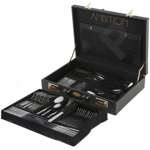 Luksusowy komplet sztućców marki AMBITION to 72-elementowy zestaw, który łączy w sobie nowoczesny design, wysoką jakość wykonania oraz eleganckie wykończenie, idealny zarówno do codziennego użytku, jak i na wyjątkowe okazje.