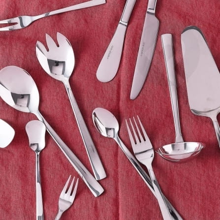 72-elementowy zestaw sztućców, który zapewnia pełne wyposażenie stołu dla 12 osób.