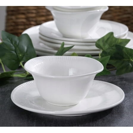 Bonita to zastawa o niezwykle oryginalnym designie, zainspirowanym naturą. Wykonana z porcelany w delikatnym mlecznym odcieniu, każdy element tej kolekcji ozdobiony jest nieregularnymi wgłębieniami tworzącymi charakterystyczny prążkowany wzór. Miseczki, talerze i spodki wyróżniają się nierównymi, falującymi obrzeżami oraz subtelnie wywiniętymi do góry krawędziami, co nadaje im lekkości i delikatności.